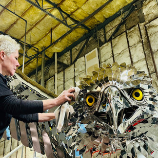 Kevin met Michelle during a transitional period in his life. Recently separated and immersed in a large dragon project at his farm in Chilliwack, he decided to try online dating. That’s how he met Michelle in the mid-2000s. Their connection solidified after a couple of dates and a homemade turtle cheesecake she brought him. At the time, Michelle ran a hair studio with her mother, working primarily in care homes. As Kevin’s sculpture business grew busier, Michelle began to help out with bookkeeping and errands, eventually transitioning into more hands-on roles in the workshop. “She just picked it up,” Kevin says, describing how Michelle learned paper templating and pattern-making by working closely with him. Today, Michelle plays a key role in their operation, mentoring apprentices and ensuring the precision of their projects.