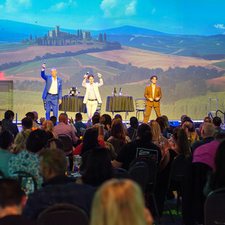 The production’s home, Lighthouse Artspace Las Vegas, amplifies the show’s artistic dimension with large-scale immersive installations and atmospheric multimedia environments. Using 360-degree projections, the venue transports audiences to the vineyards of Italy, Spain, and other regions, creating a visual journey that complements the tasting. Each segment unfolds visually and verbally, making every swirl and sip an act of discovery and connection among place, palate, and performance.
